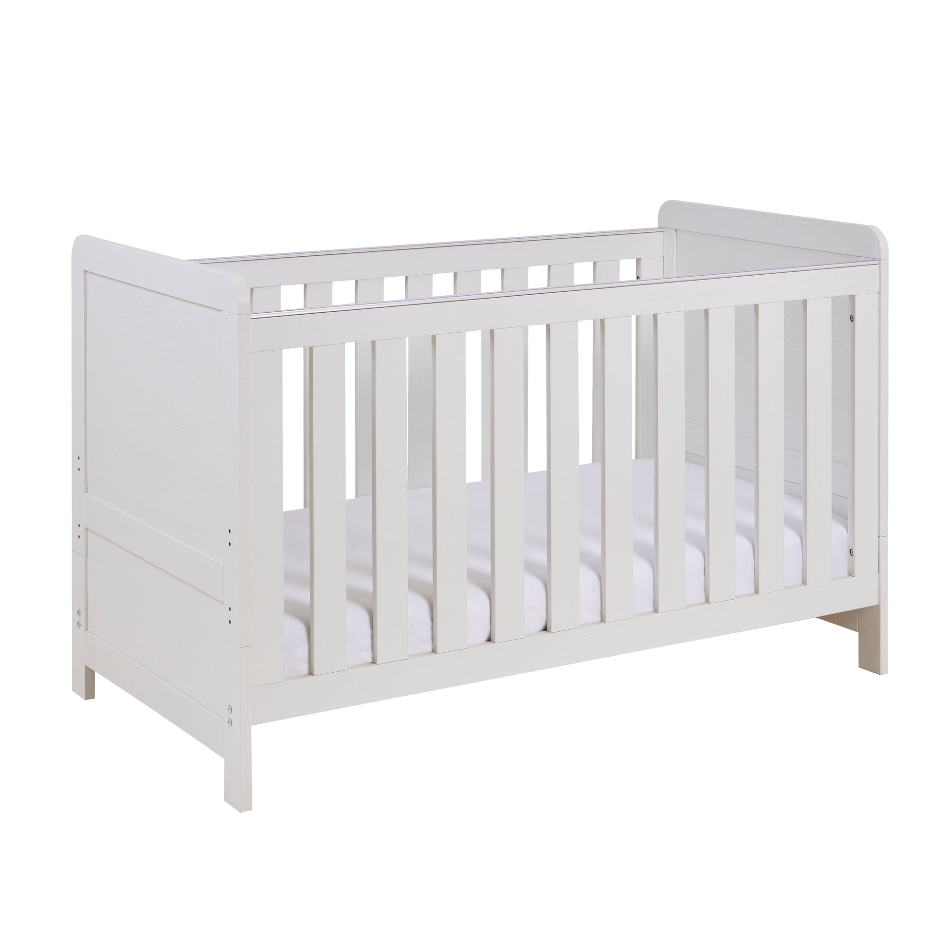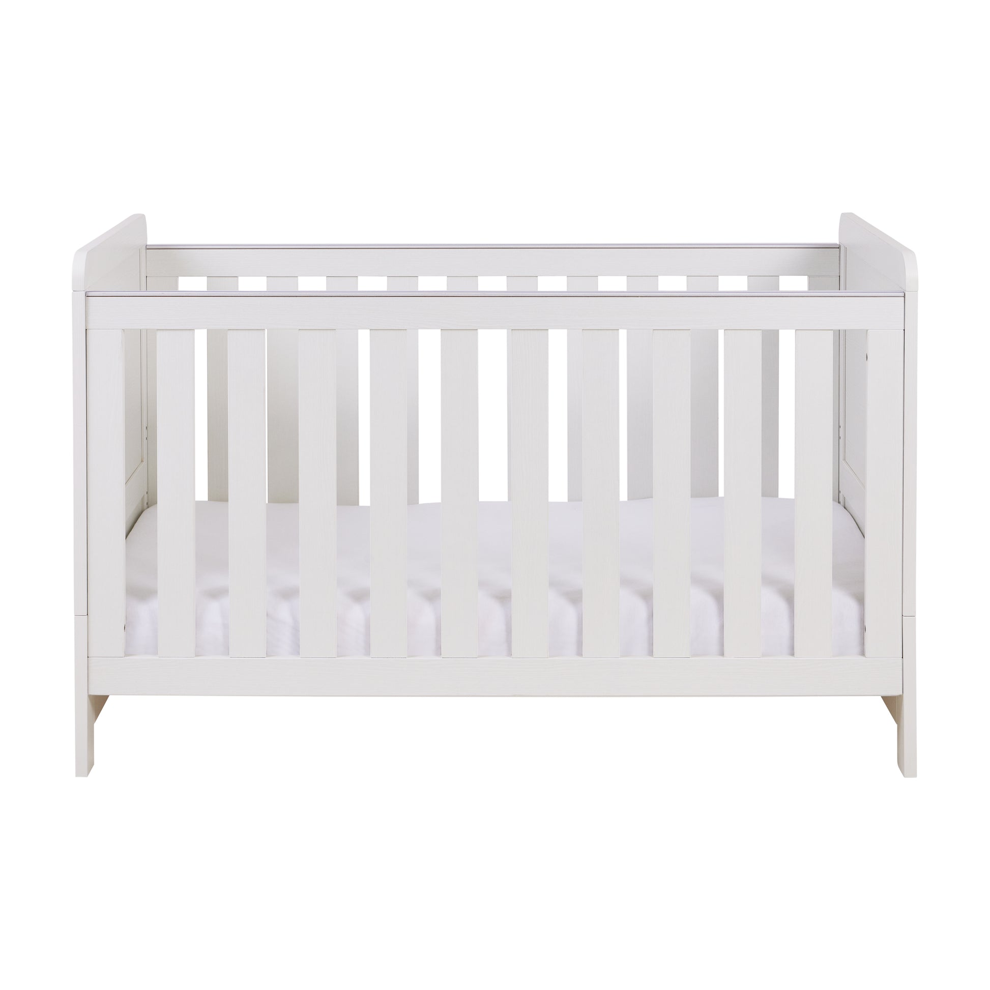 The Caro Cot Bed is part of the extended Caro Collection, designed with the modern parent in mind. The whitewash wood grain finish allows you to see the texture of the wood and is perfect as a standalone bed if you decide not to team it up with the matching Babymore furniture.