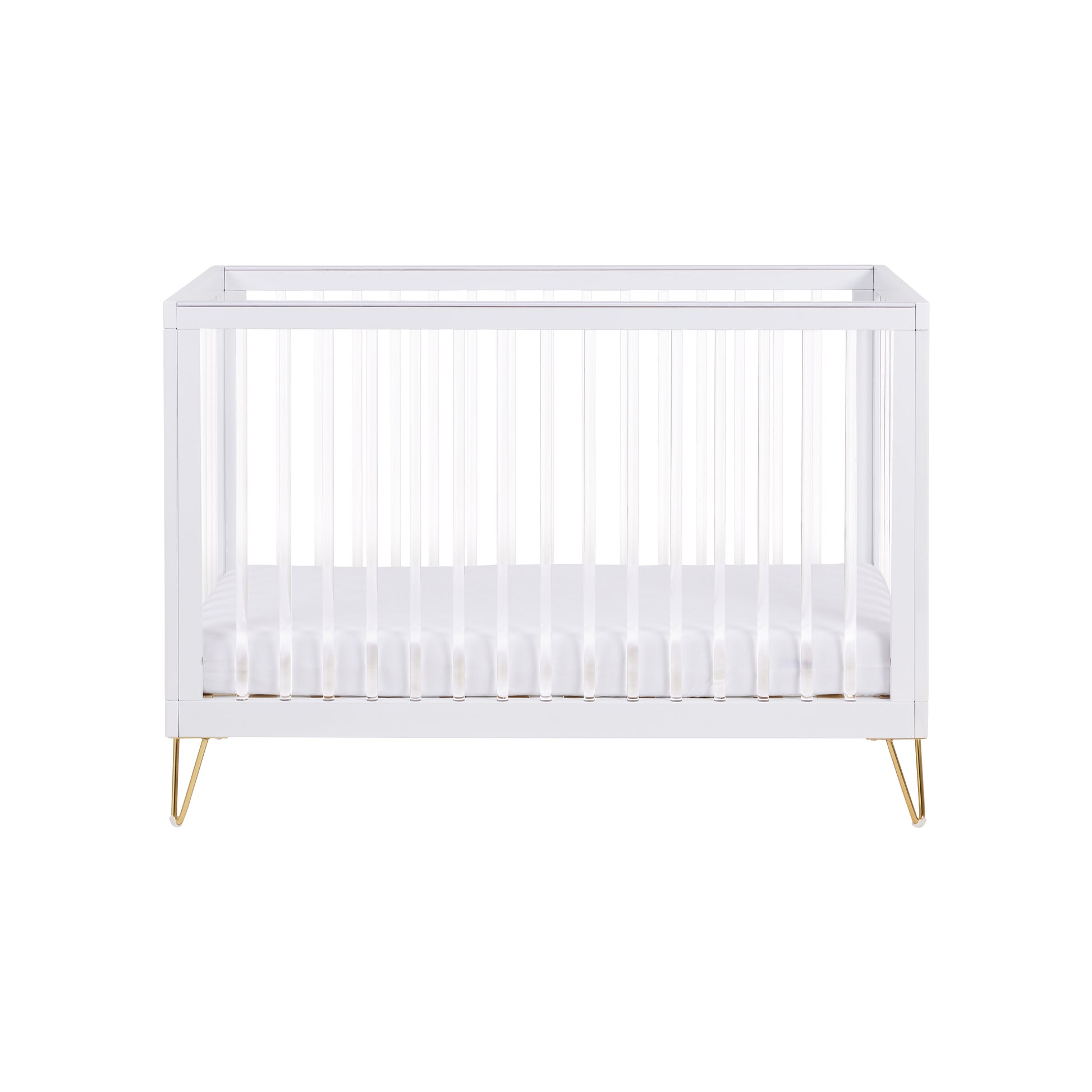 The stunning Babymore Kimi convertible cot bed will be the standout piece of furniture in your nursery. An exquisite combination of contemporary wooden style, modern acrylic and retro hairpin legs all blend seamlessly to provide a striking fashion statement. The 100% recyclable, non-toxic acrylic provides an airy, open feel that allows full visibility of your little one from any angle. The Scandi-inspired cot bed has been stylishly designed with retro hairpin legs. It offers 3 adjustable mattress heights, teething rails, and can be transformed into a toddler bed, suitable from birth to 4 years old. The hairpin legs are made of high quality steel wire, stable, sturdy and durable, and come with floor protectors included.