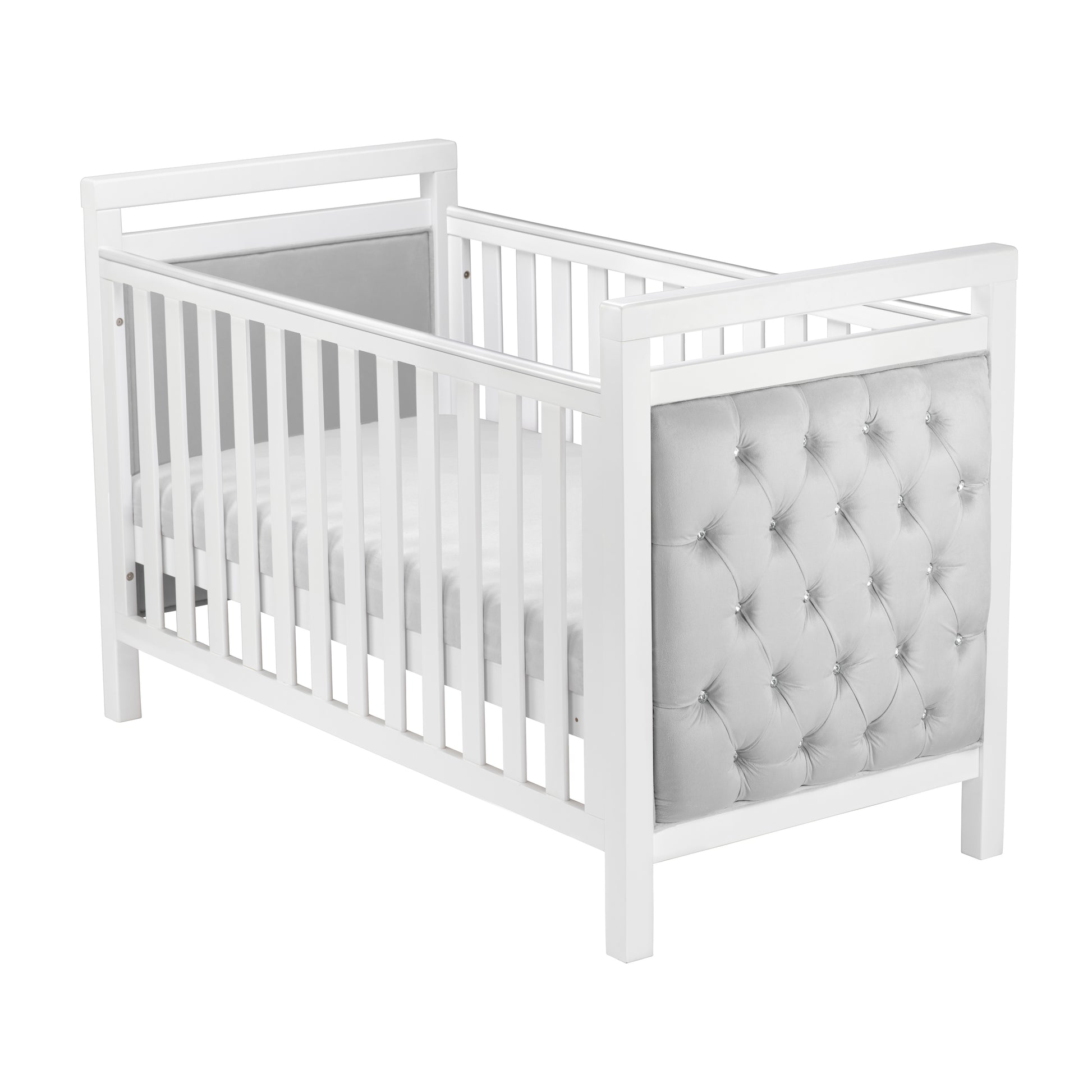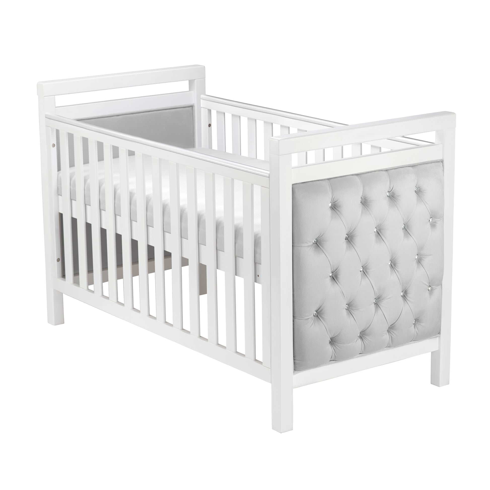 The Velvet Deluxe cot to toddler bed is all about both cosiness and comfort for your baby. The headboard and footboard are deeply cushioned, giving an ideal place for your little one to sit up and relax once they get older. The luxurious diamante button detailing, combined with the soft velvet upholstery, give this modern cot bed a modern feel that will complement any nursery. The fabric is water resistant and durable, making keeping it clean very simple. A teething rail is installed on either side to help prevent marks in the wood from teething children.